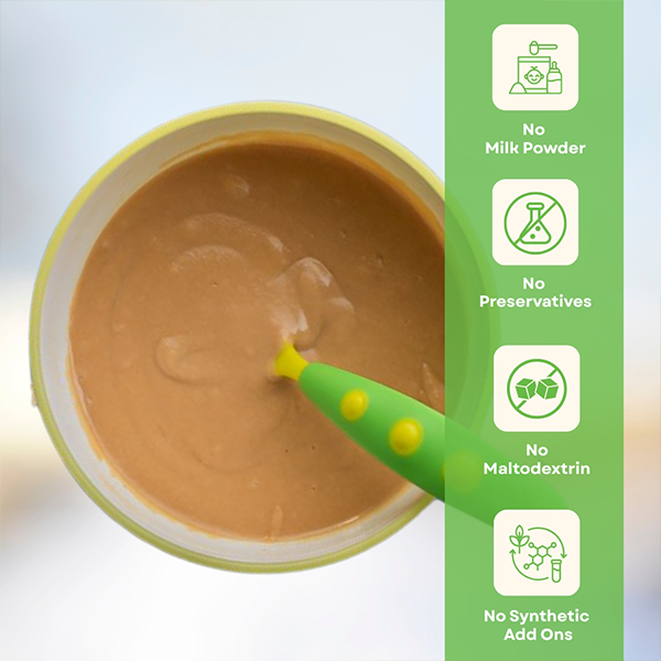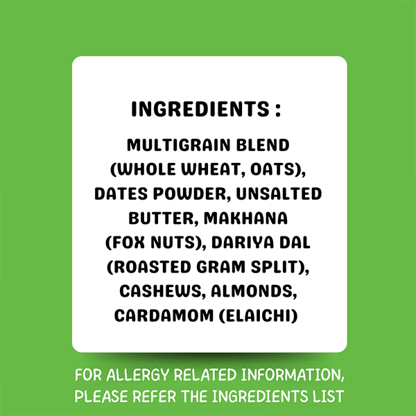 Ready- to-eat healthy and natural instant premix powder made out of Wheat, Oats, and power blend of Makhana (fox nuts) alongwith almonds, cashews, daria dal powder and Dates powder wherein you just have to add water/milk, mix and its ready to eat. Absolutely Natural with No salt, no refined sugar, no preservatives and no synthetic add-ons and no artificial flavours. No need to cook.