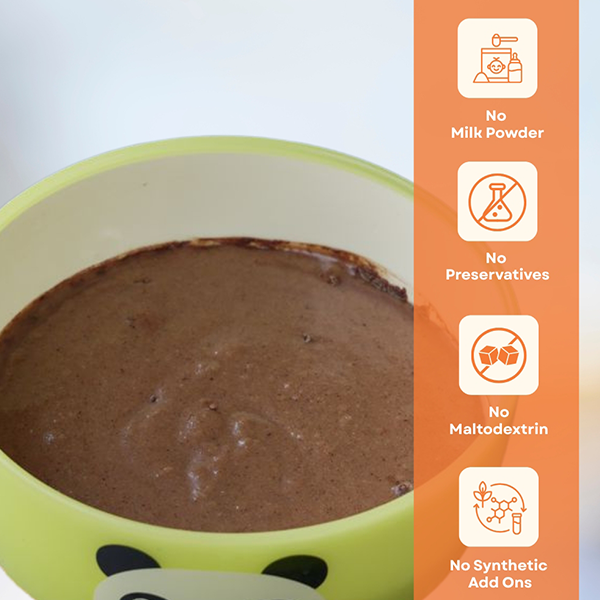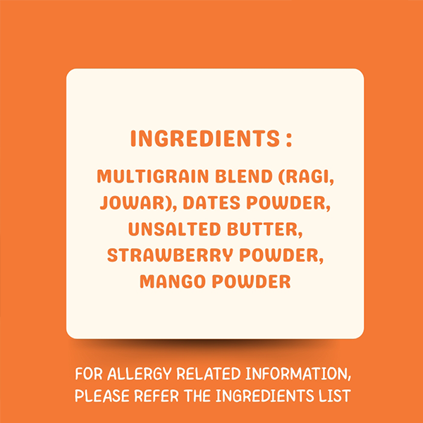 Ready- to-eat healthy and natural and GLUTEN FREE instant premix powder made out of Ragi, Jowar and Dates Powder and with natural fruit powders (Strawberry and Mango) wherein you just have to add water/milk, mix and its ready to eat. Absolutely Natural with No salt, no refined sugar, no preservatives and no synthetic add-ons or artificial flavours. No need to cook.