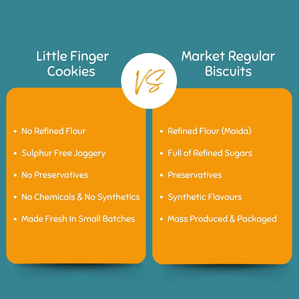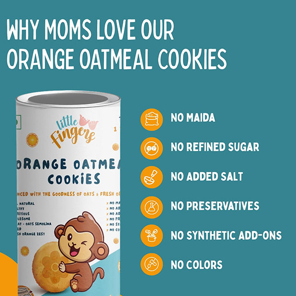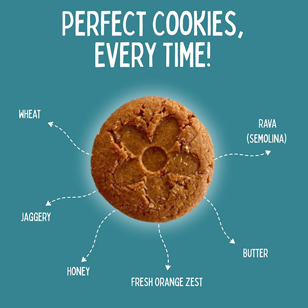 Healthy, wholesome and Nutritious Cookies made out of Oats, Whole wheat, Semolina, Fresh Orange Zest and sulphur free Jaggery. No Maida, No refined sugar, No salt, No preservatives and No synthetic add-ons make them super Nutritious and Healthy.