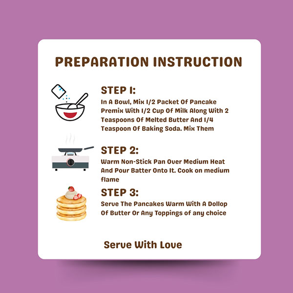 Step 1: in a Clean Bowl, Mix ½ Packet (75-80 Gms) of Pancake Premix With ½ Cup of Milk Into a Smooth Batter. To It, Add 1-2 Teaspoons of Melted Butter and Mix Well.