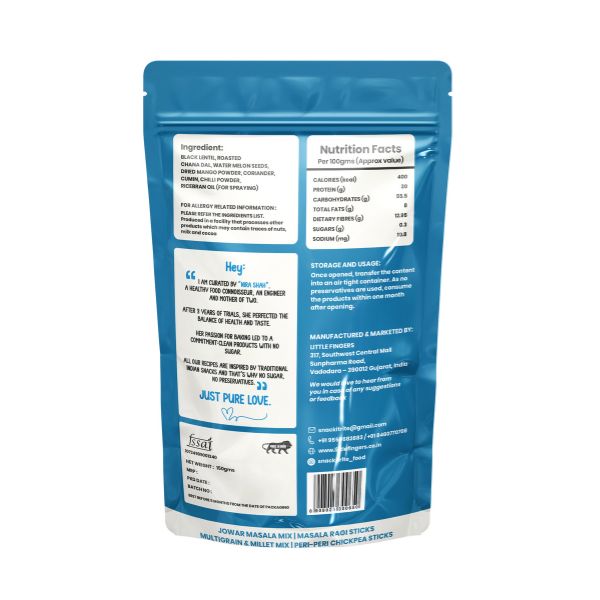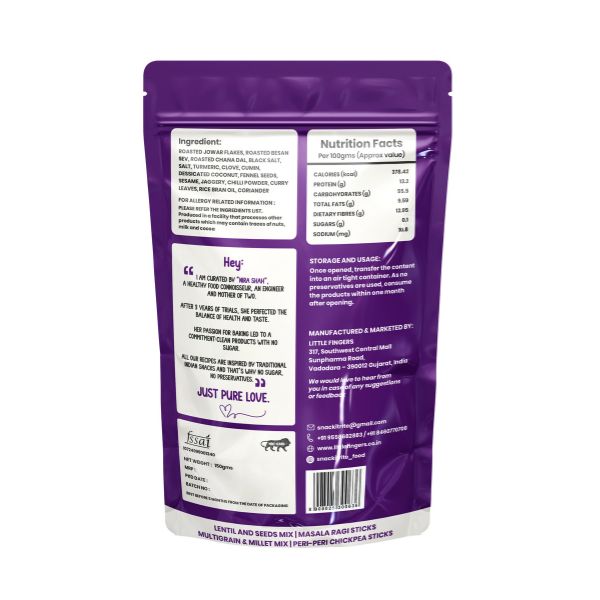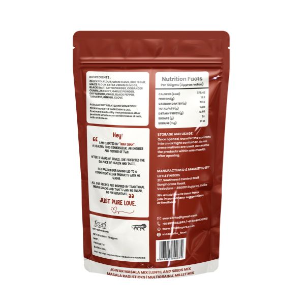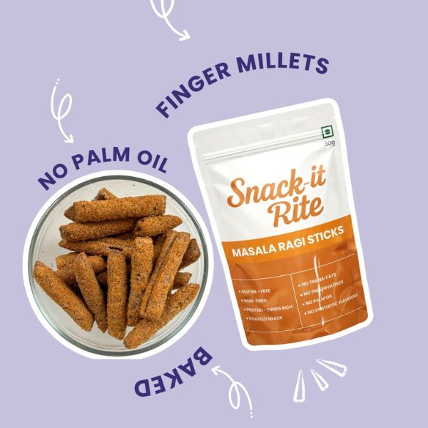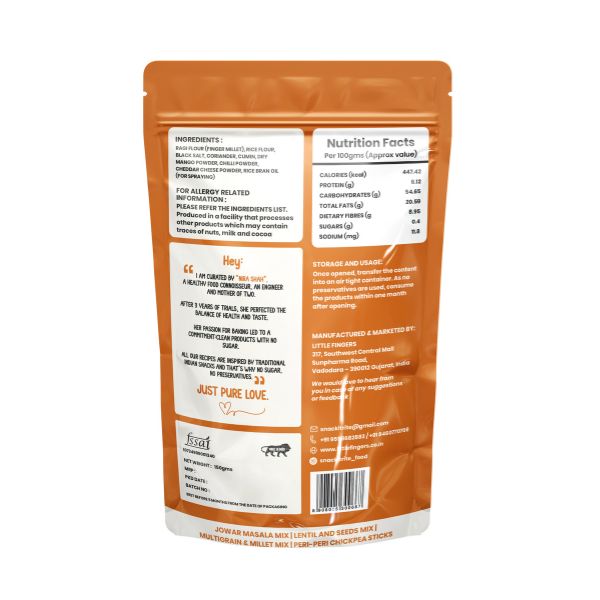 Our Masala Ragi Sticks are the perfect blend of health and taste—crafted with the wholesome goodness of ragi, completely Roasted and Baked and seasoned with everyday Indian masalas for that familiar, homely flavor. High in fiber, calcium, and iron, these crunchy sticks are a guilt-free snack made without palm oil, giving you both nutrition and satisfaction in every bite. With their crispy texture and just the right hint of spices, they’re addictive in the best way possible. Whether you’re relaxing after a long day, pairing them with a chilled drink, or simply looking for a healthier alternative to fried snacks, Masala Ragi Sticks are your ideal snacking companion—wholesome, crunchy, and irresistibly delicious.